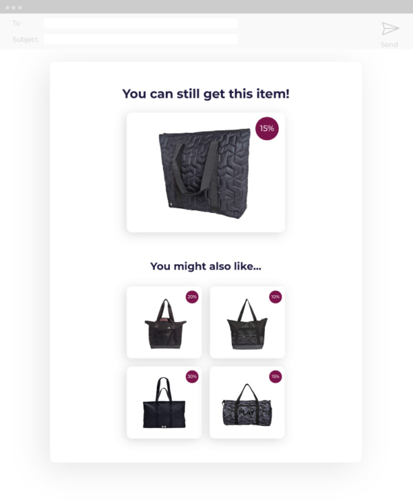 A few days later the price of the bag drops 15%, which enables the price drop trigger, sending the customer an email with the good news.
