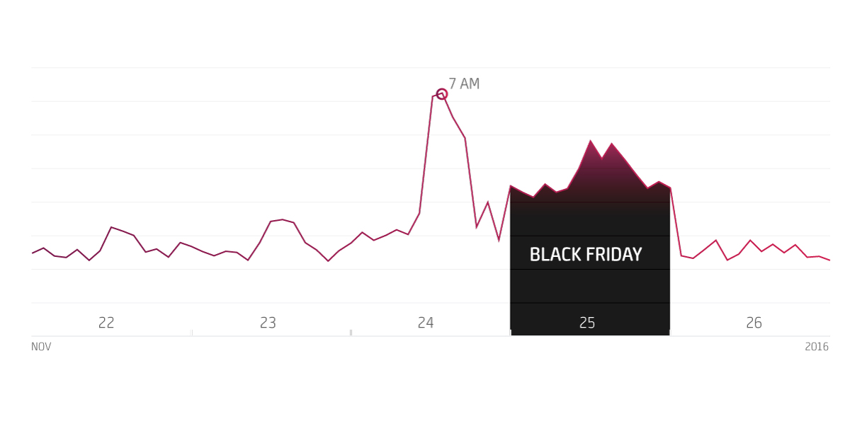 - Traffic doesn’t peak on the actual day of Black Friday.